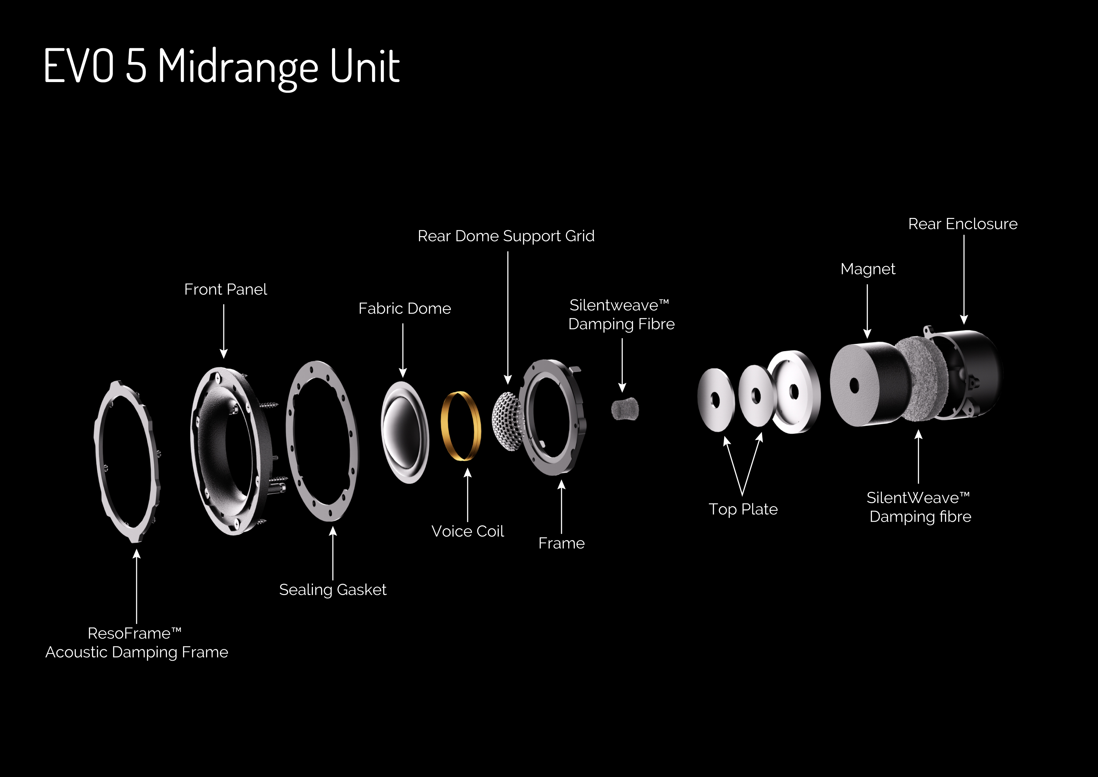 これらのアプローチによりEVO5のウーファーユニットはパワフルと明瞭を両立させ、比類なき低域再生を実現しています。